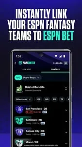 ESPN BET is the Sportsbook for Sports Fans.Beyond BIG odds boosts, exclusive markets and a massive range of player props, we introduce you to FanCenter, where you can instantly link your ESPN Fantasy Teams to ESPN BET!If you love betting parlays on Sunday or have an NFL MVP futures pick, you have to download the latest version of ESPN BET Sportsbook. The newest features are unrivaled, and you’ll see why we are rated 4.8 stars from 187,000+ ratings!Plus, new users who bet $10 get $100 in Bonus Bets! T&Cs apply. Not avail in NY.ESPN BET MINT CLUBLink your ESPN & ESPN BET accounts to unlock exclusive features & perks, including members only promos, monthly giveaways & personalized features.DAILY PROMOSMake the most of ESPN BET Sportsbook’s daily offers, including Bonus Bets, Bonus Spins, & Credits. Our promotions are designed to give you more ways to play, with exclusive rewards & chances to earn extra bonuses.$100 IN BONUS BETSStart your journey with ESPN BET Sportsbook & enjoy our new player bonus - $100 in Bonus Bets! All you need to do is bet $10. T&Cs apply. Not avail in NY.FANCENTERInstantly link your ESPN Fantasy Teams to ESPN BET! Bet right on your squad plus get personalized picks & custom parlays based on your favorites.BOOST YOUR NFL BETS WITH PROFIT BOOSTSWant to take your football winnings to the next level? Our Profit Boosts give you the power to increase your payouts on your favorite predictions.SEAMLESS USER EXPERIENCE With 187,000+ ratings & an average score of 4.8, players love ESPN BET Sportsbook. It’s designed to provide a seamless, top-tier experience. STREAM OVER 150,000 LIVE EVENTS Players can stream over 150,000 live events in ESPN BET Sportsbook. Live streaming is available to registered users with a funded ESPN BET account. Restrictions & blackouts apply.PARLAY YOUR WAY TO BIGGER WINSCreate custom parlays in seconds, from SGPs to cross-sport parlays, teasers, and more. The navigation is lightning fast, and the compounding odds create huge payout potential.BET ON ALL YOUR FAVORITE SPORTSOur extensive sportsbook selection makes it easy to bet on your favorite sports & leagues, including:- NFL betting- College football betting (CFB)- MLB betting- WNBA betting- Golf betting (PGA Tour & LIV)- MMA & UFC betting- ATP & WTA tennis betting- Premier League & MLS soccer bettingAnd much more!YOUR FAVORITE CASINO GAMES AT HOLLYWOOD CASINOThe app brings the thrill of Hollywood Casino right to your phone! Enjoy popular casino games like blackjack, slots, roulette, & live dealer options. Available in select states. SECURE TRANSACTIONS Start betting in minutes with ESPN BET’s quick & secure registration process. Transfer funds safely using your preferred method for deposits & withdrawals.ESPN BET SPORTSBOOK IS AVAILABLE IN 20 U.S. MARKETSDownload ESPN BET Sportsbook in AZ, CO, IL, IN, IA, KS, KY, LA, MA, MD, MI, NJ, NY, NC, OH, PA, TN, VA, WV, & Washington D.C.Hollywood Casino is available in MI, NJ, PA & WV. RESPONSIBLE GAMBLINGMust be 21+. Please play responsibly. If you or someone you know has a gambling problem, help is available. Call or text 1-800-GAMBLER (CO/DC/IL/KS/KY/MI/NJ/OH/PA/VA/WV); 1-800-NEXT-STEP (AZ); 1-800-BETS-OFF (IA); 1-800-9-WITH-IT (IN); 1-800-522-4700 (LA); Hope is here. Call (800)-327-5050 or visit gamblinghelplinema.org (MA); 1-800-GAMBLER or visit mdgamblinghelp.org (MD); Call 877-718-5543 or visit morethanagame.nc.gov (NC); Call (877-8-HOPENY) or text HOPENY (467369) (NY); Call or text TN REDLINE 800-889-9789 (TN).LEGAL TERMS & CONDITIONSPrivacy Policy: https://pennentertainment.com/privacy-policyTerms of Use: https://espnbet.com/legal/termsEnd-User License Agreement: https://espnbet.com/legal/eula"ESPN BET” & related trademarks are used under license from ESPN, Inc. All Rights Reserved. Certain content reproduced under license.