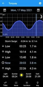 Tidal predictions for over 8500 locations showing high/low tide times, tide curve and current predicted tide height.Sea temperature (2 days) for 7000+ locations.Wave forecast (5+ days) for 5600+ locations.Storm surge forecast (2-3 days) for UK and nearby.Sun/Moon data worldwide.Covers: UK, Europe, Africa, Middle East, North/South America, Asia, Australia, New Zealand and more.Tide predictions based on data from UKHO, HOAA, NTSLF and others.Features:- Search, nearest and recent locations.- Map- Tidal prediction charts.- Current predicted tide height.- Tide predictions from 2015 to 2050 for all locations.- Works completely offline (except for maps, sea temperature, wave forecasts).- No adverts and no in-app purchases.- No personal data collected.Version 6.0- Added wave forecasts.- Added tabs for additional data.- Many minor improvements.Version 5.0- Added sea temperature.- Additional moon information.